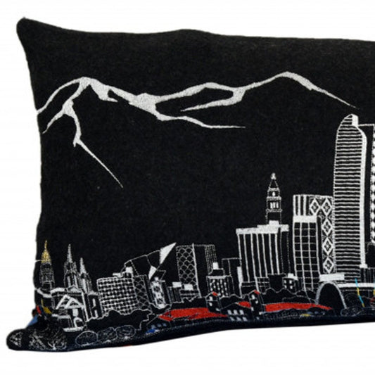35" Black Denver Nighttime Skyline Lumbar Decorative Pillow