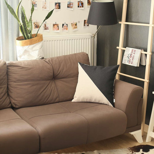 Black and Brown Strap Faux Leather Throw Pillow