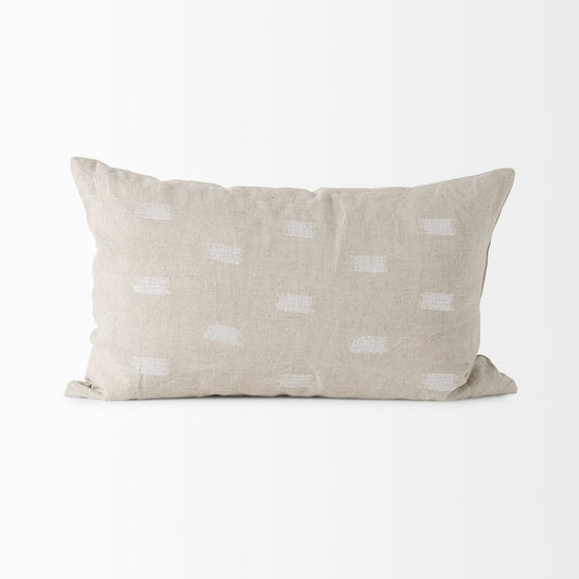 Canvas Beige And White Lumbar Accent Pillow Cover
