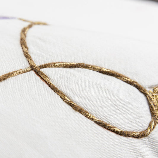 Natural and Golden Metallic Beaded Decorative Throw Pillow
