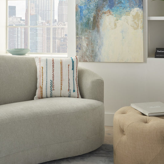 Multicolor Embroidered Stripe Throw Pillow