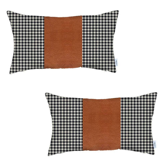 Set Of 2 Brown Houndstooth Lumbar Pillow Covers