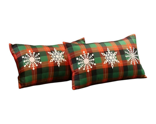 Set of 2 Christmas Snowflake Trio Plaid Lumbar Pillow Covers