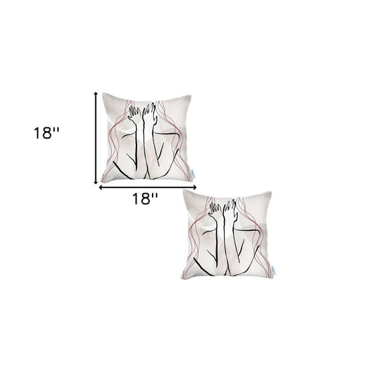 Set of 2 White and Brown Boho Throw Pillow Covers
