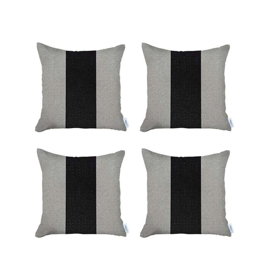 Set Of 4 Cream And Black Diagonal Pillow Covers