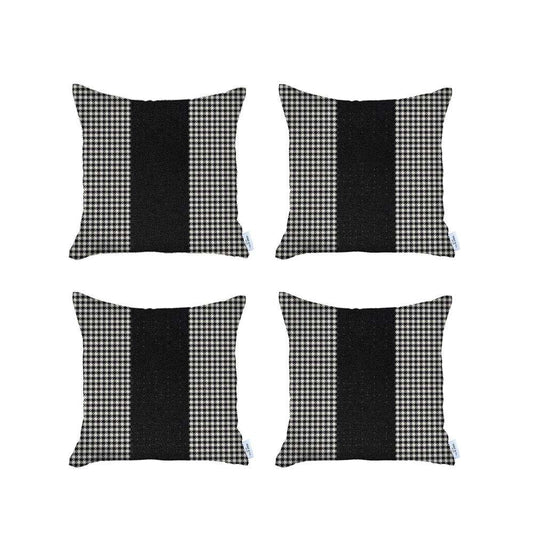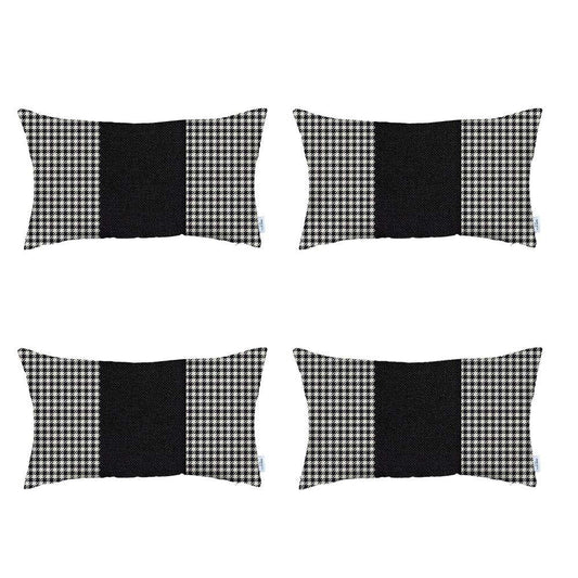Set Of 4 Black Houndstooth Lumbar Pillow Covers
