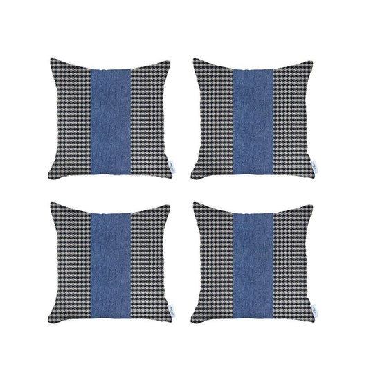 Set Of 4 Blue And Black Lumbar Pillow Covers