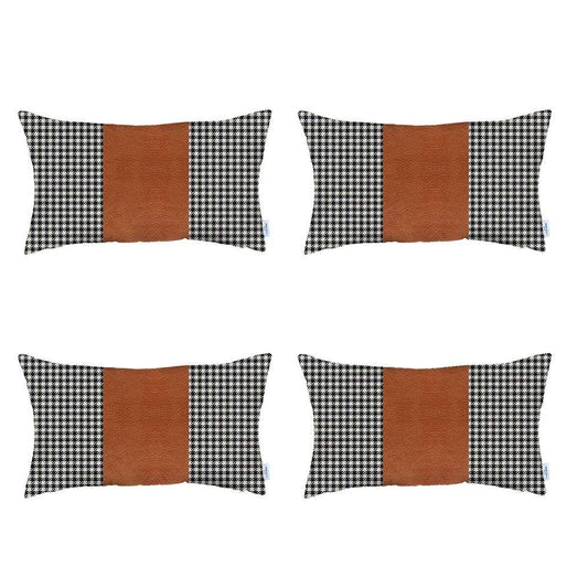 Set Of 4 Brown Houndstooth Lumbar Pillow Covers