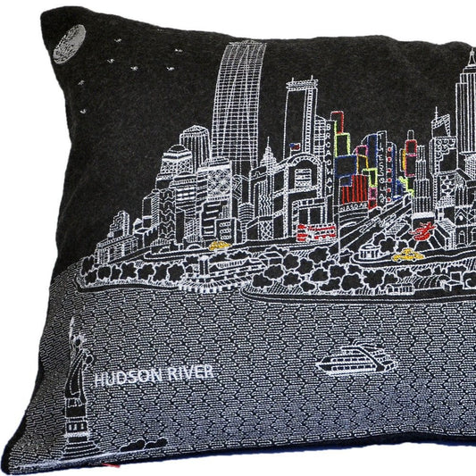 14" X 24" Black Gray and White Hometown Pride Wool Lumbar Throw Pillow