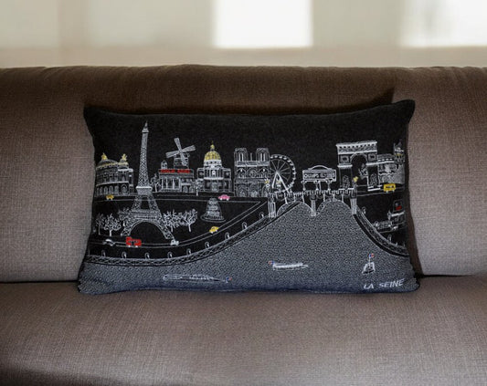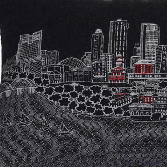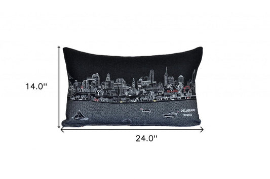 14" X 24" Black and White Hometown Pride Wool Lumbar Throw Pillow