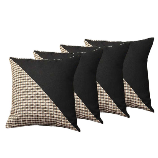 Set of Four 18" Black Ivory And Brown Fabric Throw Pillow Covers