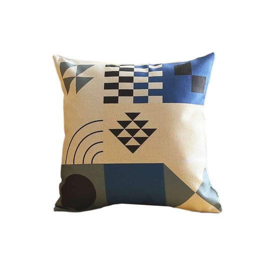 Set of Four 18" Ivory Blue and Black Geometric Fabric Throw Pillows