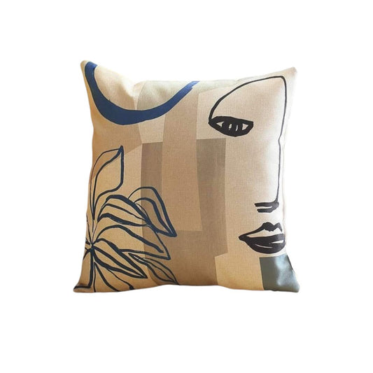 Set of Four 18" Ivory Blue and Gray Abstract Face Fabric Throw Pillows