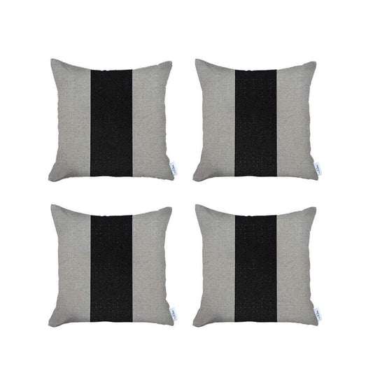 Set Of Four 18" X 18" Black Polyester Zippered Pillow Cover