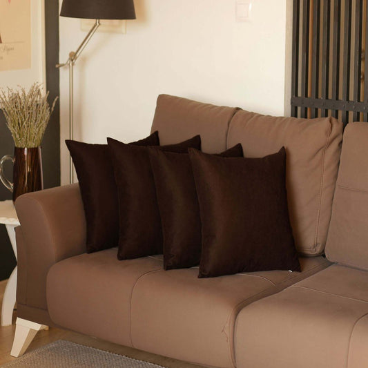 Set Of Four 18" X 18" Brown Polyester Zippered Pillow Cover