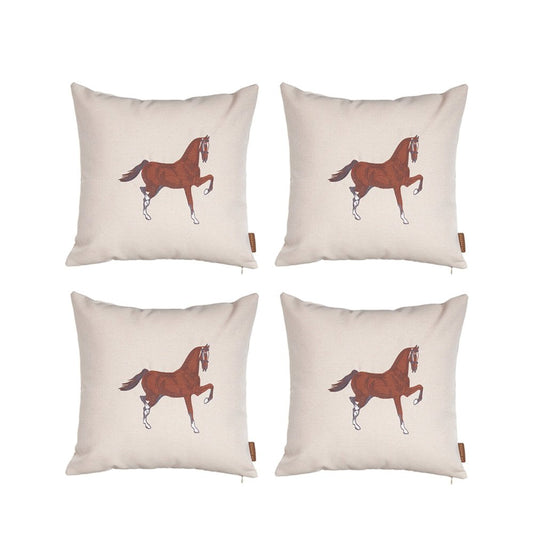 Set of Four 18" X 18" Beige Horse Polyester Zippered Pillow With Embroidery