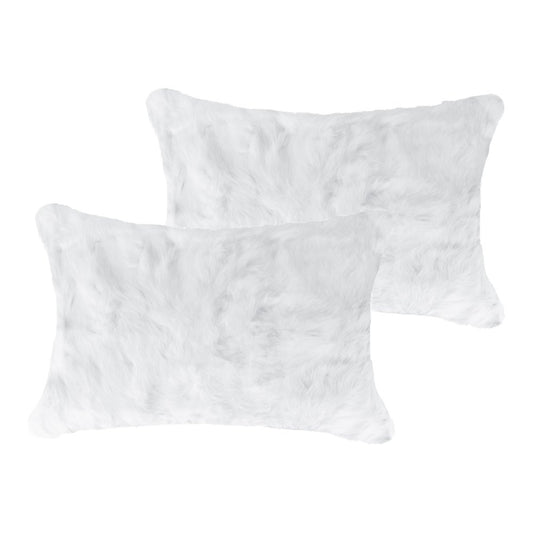 Set of Two 12" X 20" White Natural Fur Throw Pillows