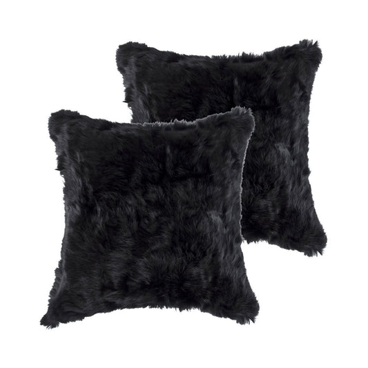 Set of Two 18" Black and White Rabbit Natural Fur Throw Pillow