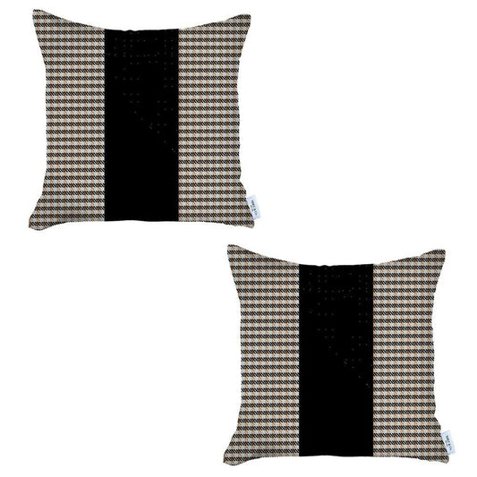 Set of Two 18" Beige and Black Throw Pillow