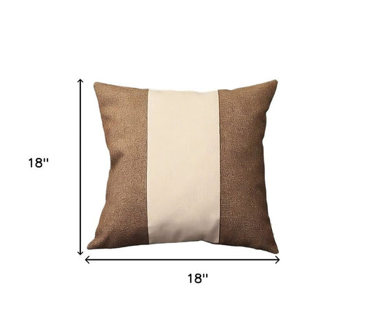 Set of Two 18" Brown And Ivory Faux Leather And Fabric Throw Pillows