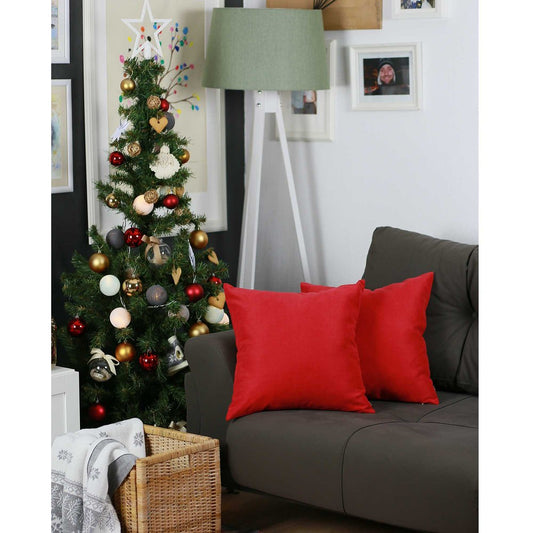 Set Of Two 18" X 18" Red Polyester Zippered Pillow Cover