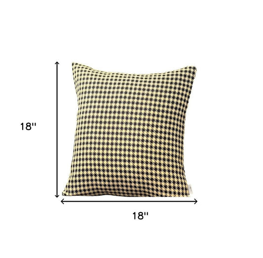 Set of Two 18" Yellow and Black Houndstooth Fabric Throw Pillows