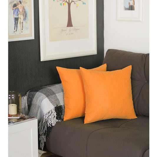 Set of Two 20" Orange Fabric Throw Pillow Covers