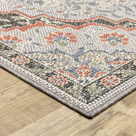 10' X 13' Charcoal Rust Grey Blue Ivory And Brown Oriental Power Loom Stain Resistant Area Rug