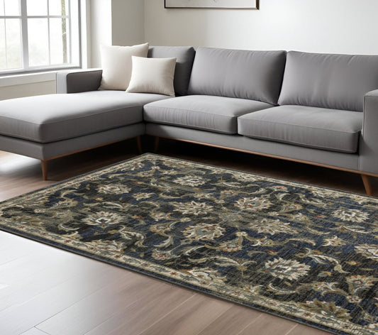 10' X 13' Charcoal And Blue Oriental Distressed Area Rug