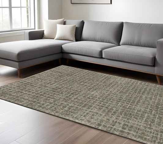 10' X 13' Grey And Beige Oriental Hand Loomed Stain Resistant Area Rug With Fringe