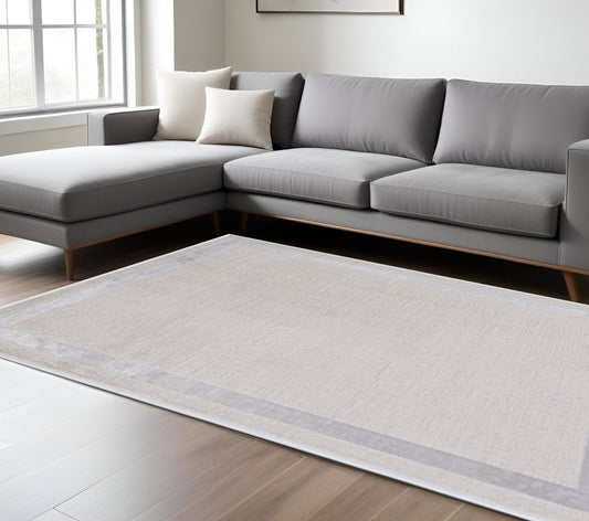 10' X 13' Ivory And Grey Oriental Power Loom Stain Resistant Area Rug With Fringe