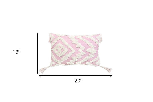 13" X 20" Pink and White Throw Pillow with Tassels