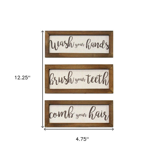 Set of Three Be Kind Be Gentle Be Humble Brown Wood Frame Wall Decor