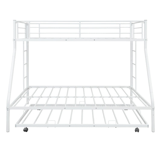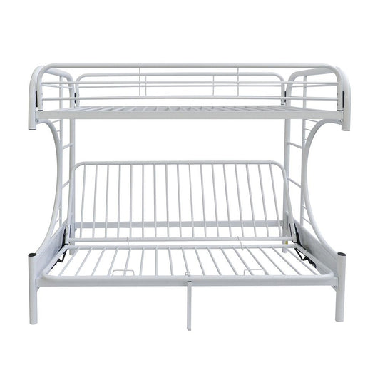 White Twin Over Full Size Metal Bunk Bed with Desk