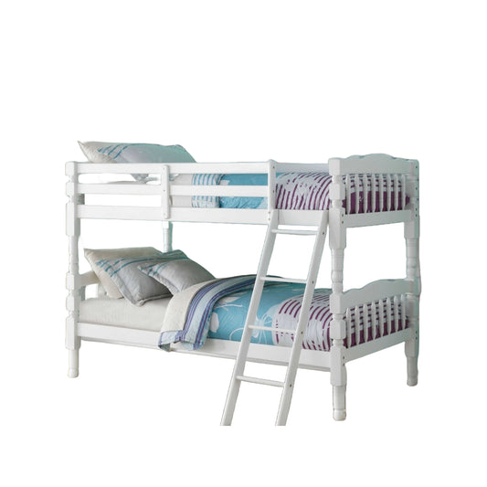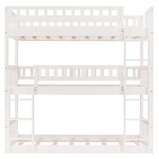 White Twin over Twin over Twin Contemporary Manufactured Wood and Solid Wood Bunk Bed