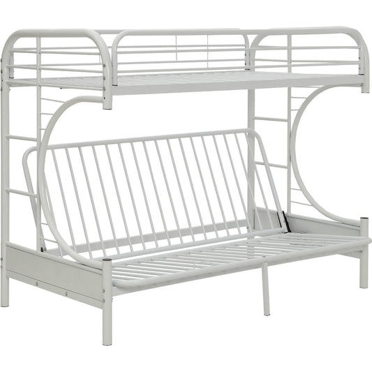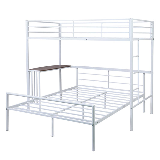 White Twin Over Full Size Metal Bunk Bed with Desk