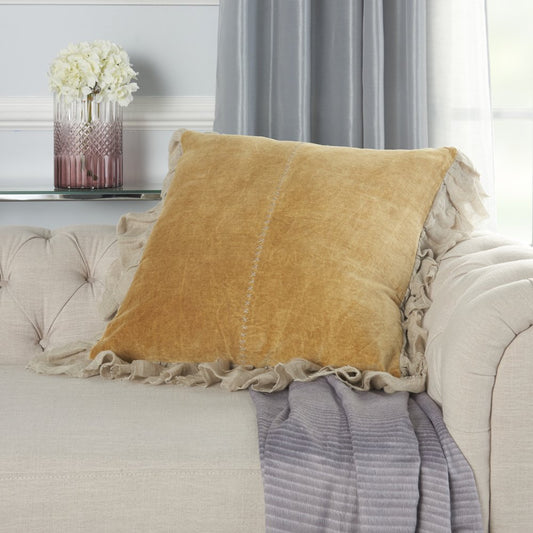 Wide Tasseled Marble Yellow Lumbar Pillow