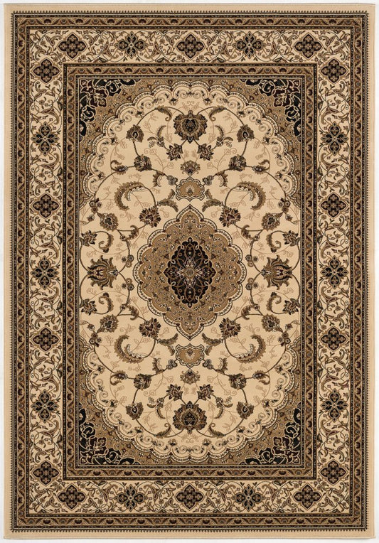10' X 13' Beige and Black Oriental Washable Non Skid Area Rug
