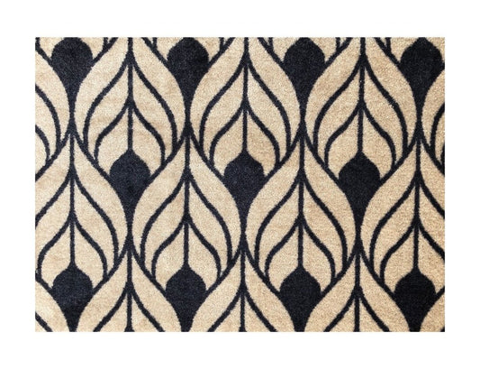 2' X 3' Graphite and Tan Abstract Leaves Washable Floor Mat