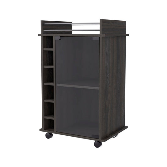 Espresso Rolling Bar Cart With Wine Storage