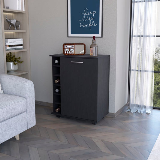 Black Rolling Bar Cart With Wine Storage