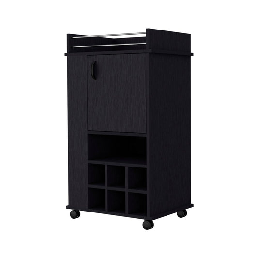 71" Black Tall Bar Cabinet with Two Door Panels and Top Wine Glass Rack