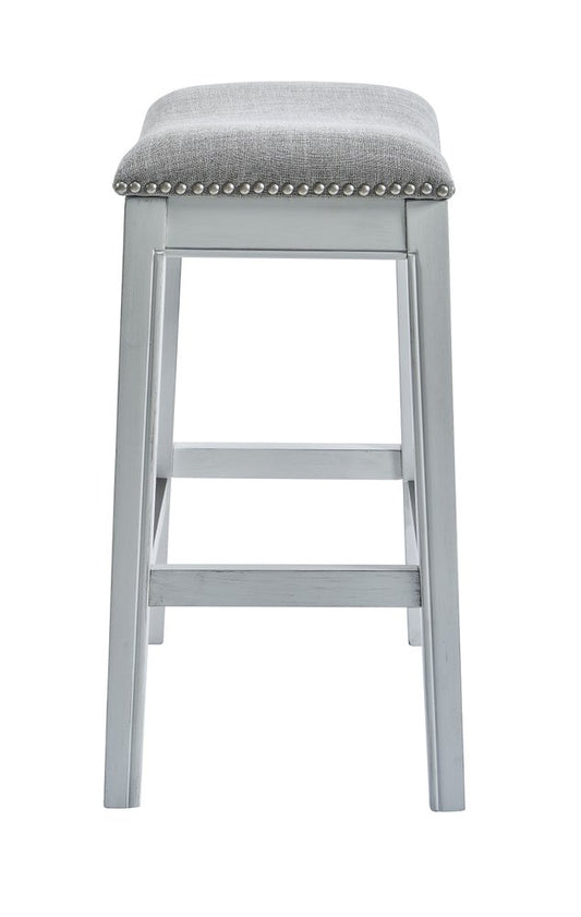 31" Light Gray And White Upholstered And Solid Wood Backless Bar Height Bar Chair