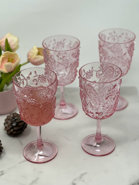 Set of Four Pink Paisley Acrylic Stemmed All Purpose Wine Glass