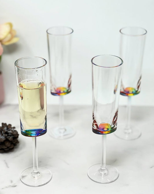 Set of Four Rainbow Geometric Acrylic Stemmed Flutes
