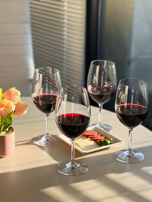 Set of Four Coral Crystal Balloon Bowl Stemmed Red Wine Glass