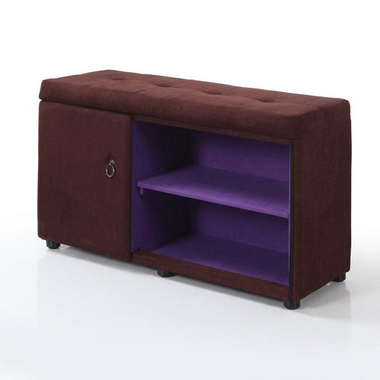 Brown and Purple Tufted Shoe Storage Bench