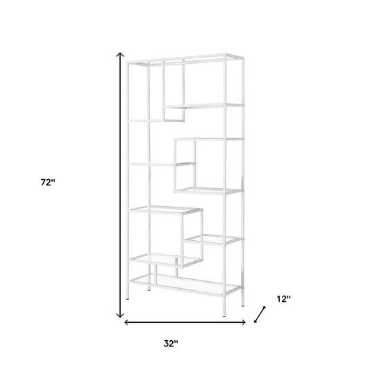 72" Silver And Clear Metal and Glass Nine Tier Etagere Bookcase