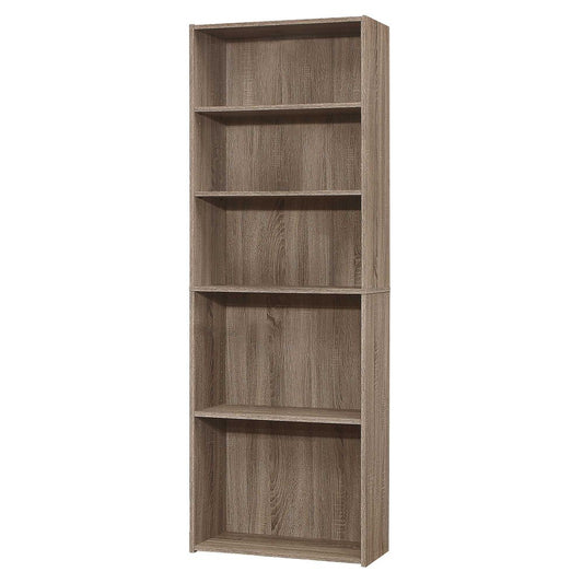 71" Taupe Distressed Wood Adjustable Five Tier Bookcase