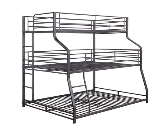62" X 83" X 74" Gunmetal Metal Triple Bunk Bed Twinfullqueen